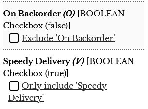 These are only enabled if the Solr field type is solr.BoolField and will be ignored otherwise, example properties: