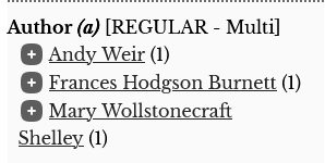 - Will be faceted, however as there will be many series of books, this should not appear with the initial results, but only when an author has been selected
