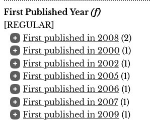 - Searching a book by decade didn't really make sense (or even having the hierarchical facet for first_published_in). They were removed as facets and made to be fields. The data was left in the Solr collection index, as they may be of use later.
