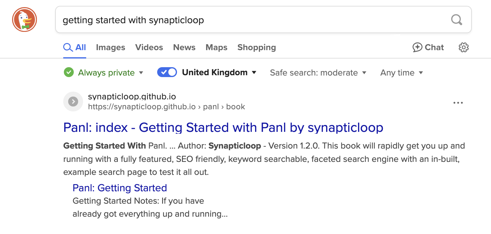 Web searches are a good example, you don't want to return all information, just the relevant part of the information that is available. In the below image for a DuckDuckGo search for the keywords "getting started with synapticloop", the following (first) result is returned: